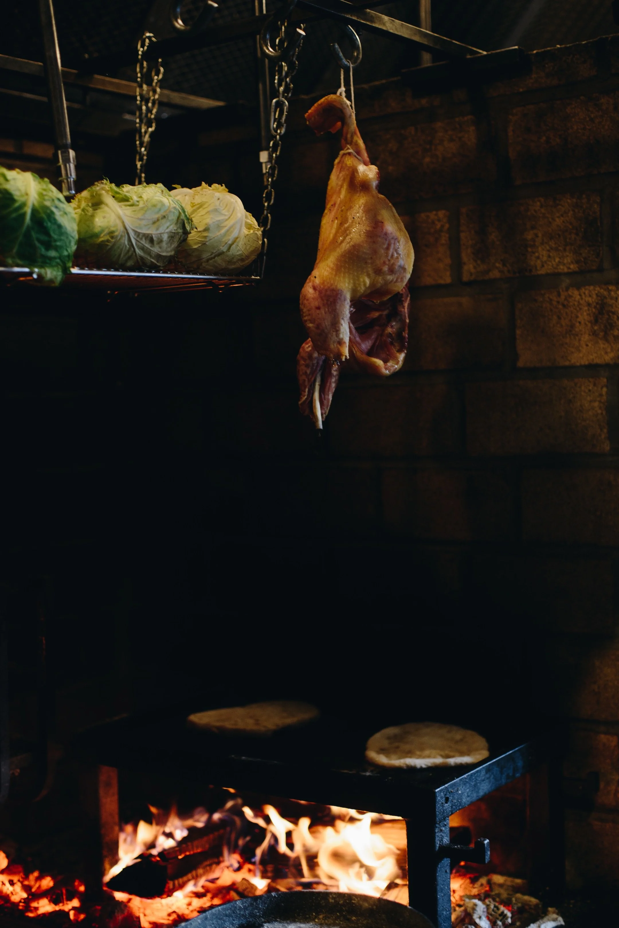 evening, with everyone gathering around to watch the chicken and vegetables over open flame. It feels intimate and
